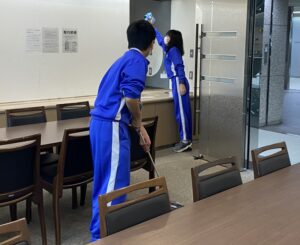 休憩室やロビーの清掃、湯茶の準備などの仕事を
